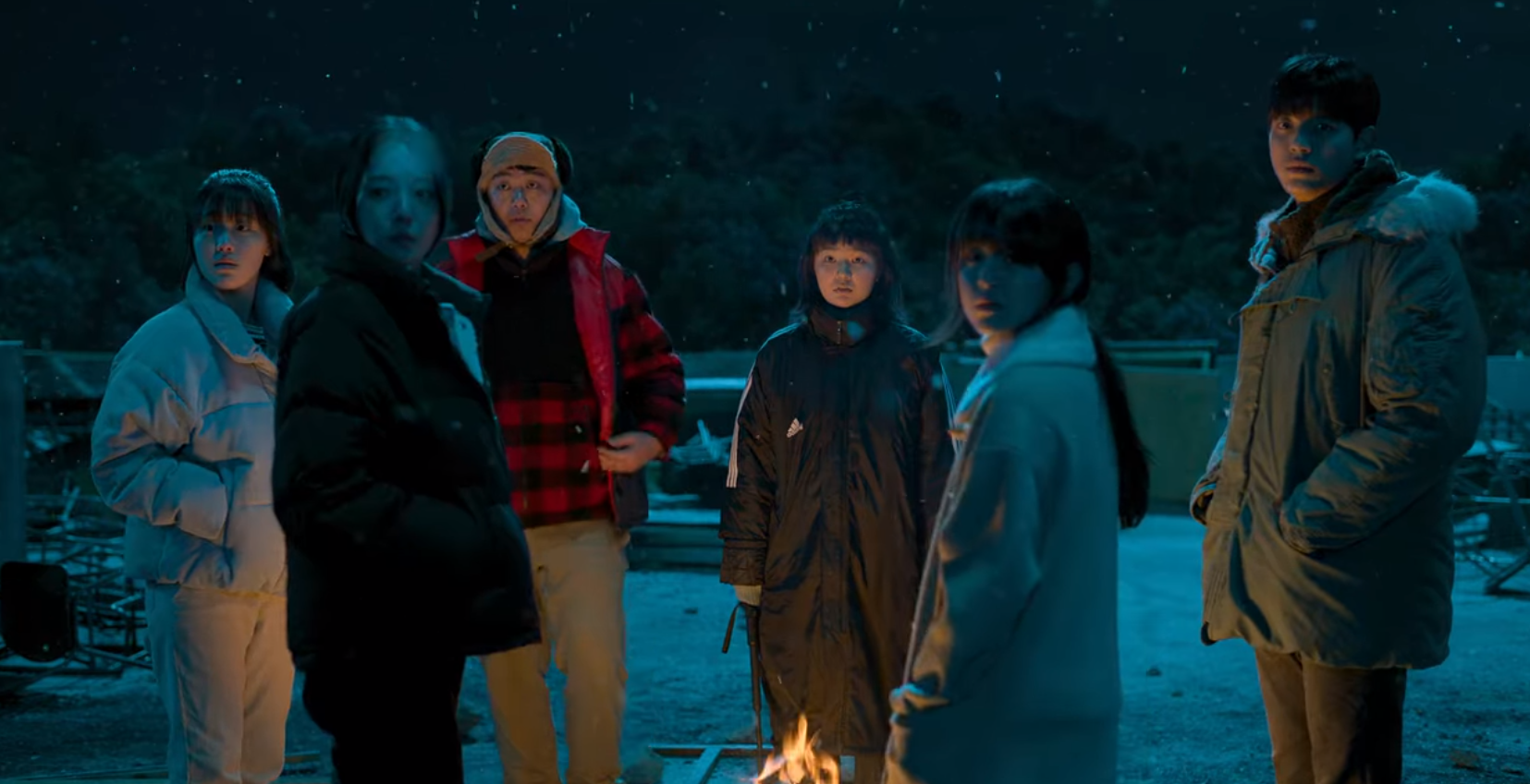 학교 옥상에서 무언가 불빛이 보입니다.